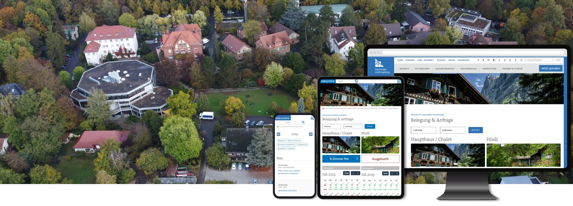 Für die Karlshöhe Ludwigsburg betreuen wir seit vielen Jahren und haben die von und programmierte Typo3-Seite (Design-Agentur: bertsch:design GmbH) immer wieder um neue Features erweitert. Ein schönes Beispiel ist dabei der Buchungskalender, über den man Zimmer im Ferienhaus der Karlshöhe in Grindelwald buchen kann. Außerdem wurde die Seite in Sachen Barrierefreiheit optimiert und ist mit einem Screenreader, einer Kontrast-Version und einer Variante in einfacher Sprache zugänglich.